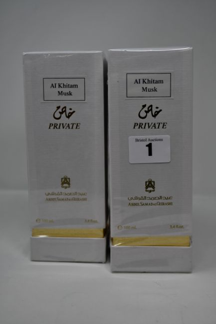 Two boxed as new Abdul Samad Al Quashi Al khitam musk eau de parfum natural spray (100ml).