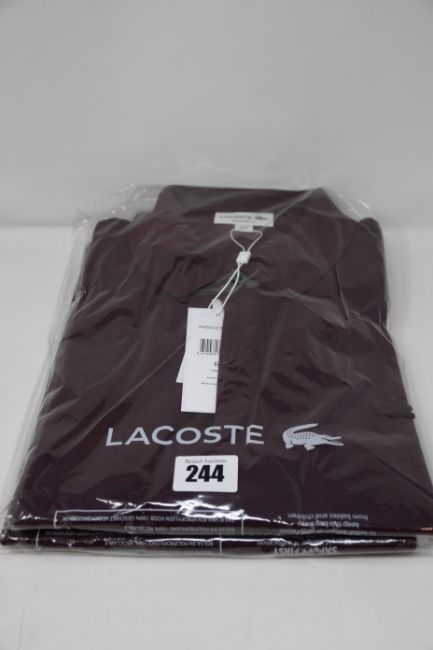 Two as new Lacoste regular fit polo shirts in Bordeaux (2 x US XL).