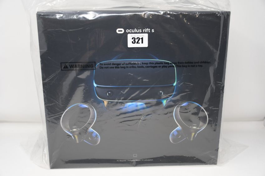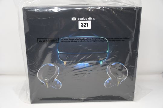 One boxed as new Oculus Rift S headset and controllers (VR headset, two touch controllers, 5m headset cable, mini display port to display port adapter).