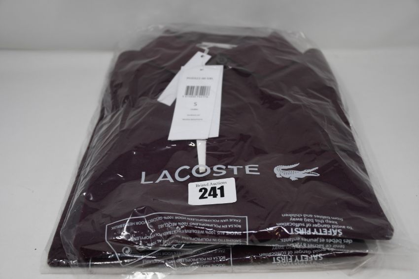 Two as new Lacoste regular fit polo shirts in Bordeaux (2 x US L).