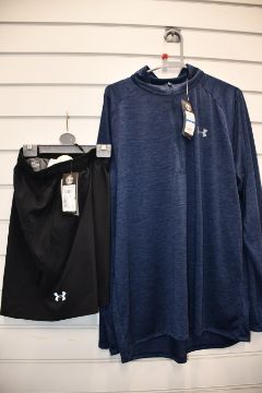 Four men's as new Under Armour UA Tech 2.0 1/2 zip tops (Assorted sizes - RRP £40 each) and four pairs of Under Armour shorts.