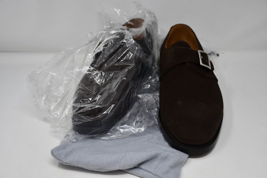 A pair of men's as new Morjas suede buckle shoes in brown (7.5).