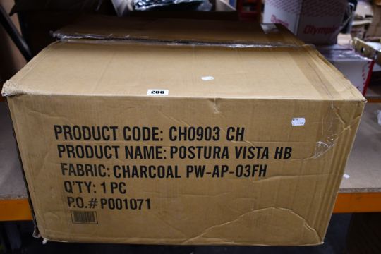 One boxed as new Vista posture high back operators chair (Colour: Charcoal black).