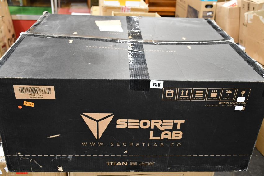 A boxed as new Secretlab Titan Prime 2.0 PU leather gaming chair in black.
