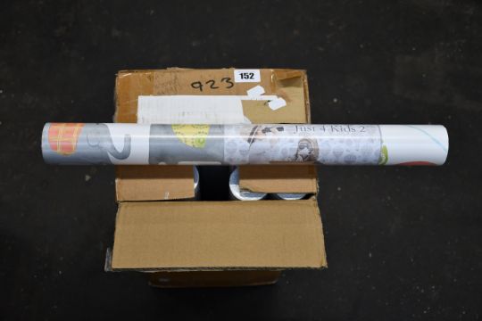 Twelve rolls of as new Just 4 Kids 2 wallpaper in various designs.