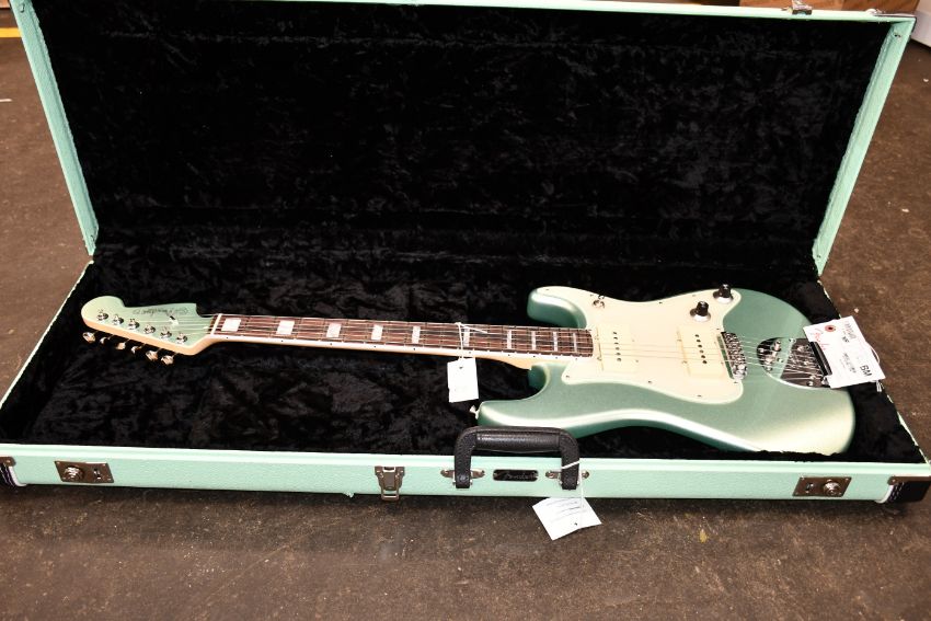A Fender Parallel Universe 2 Strat guitar and hard case (Bit of damage to front of case).