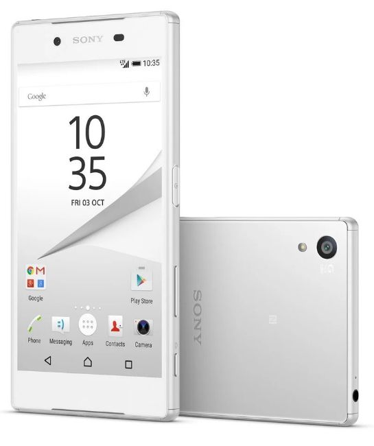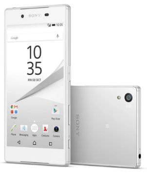 A boxed Sony Xperia Z5 Dual Android Mobile Phone in White. Box opened. Requires UK Plug-USB Adaptor, not supplied.
