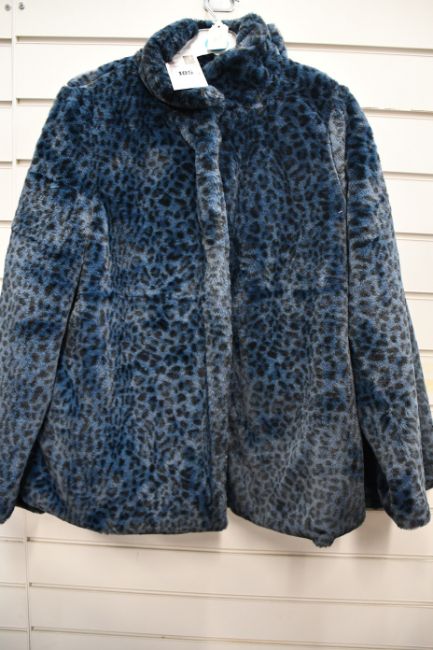 Two as new Fransa navy leopard Frmafur jacket (1 x M, 1 x L - RRP £90 each).