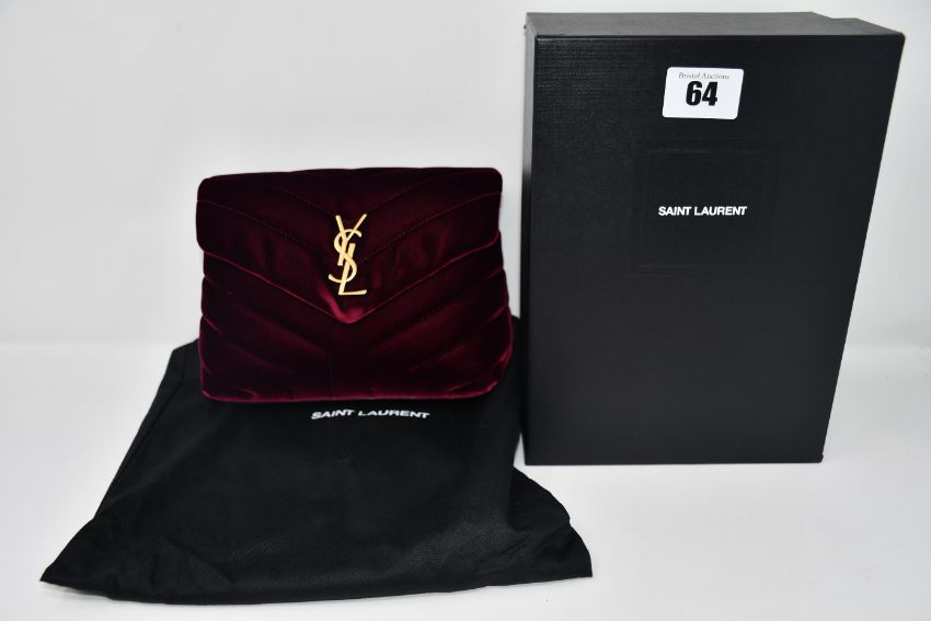 An as new YSL Pouch Monogramme bag in French burgundy complete with dust bag and box (RRP £815).