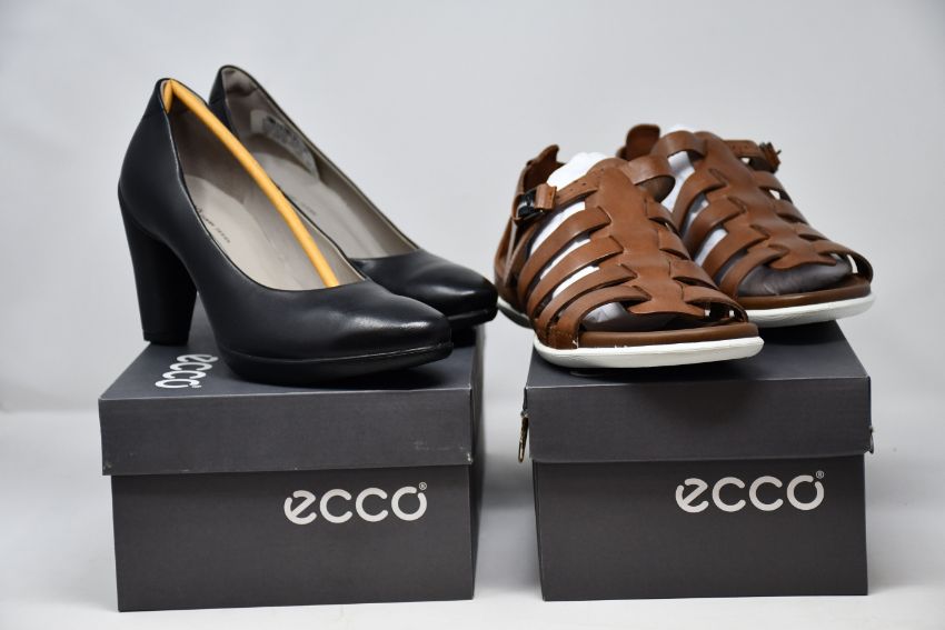 A pair of as new Ecco Sculptured 75 shoes (EU 38) and Ecco Flash sandals (EU 39).