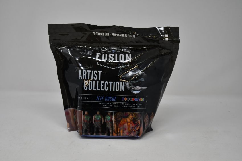 One x ten bottle set of Fusion Jeff Gogue Signature Artist Collection tattoo inks (60ml bottles).