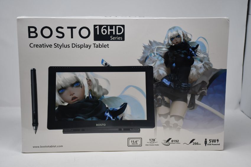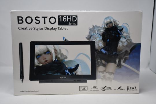 One boxed as new Bosto 16HD Series Creative Stylus Display Tablet (15.6" FHD IPS).