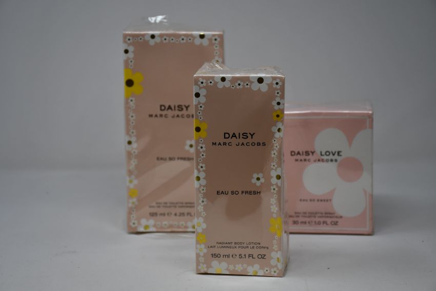 Marc Jacobs Daisy eau de toilette (125ml box with cosmetic damage), Marc Jacobs Love eau So Sweet eau de toilette (30ml) and a Marc Jacobs Daisy radiant body lotion (150ml cosmetic damage to box).