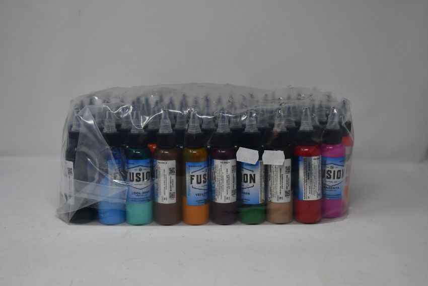 One pack of sixty assorted colours Fusion tattoo inks (60ml).