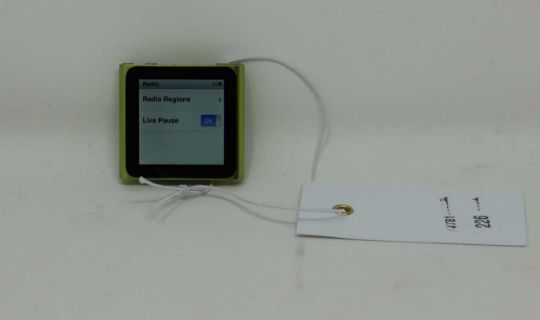 A pre-owned Apple iPod nano (6th Gen/1.54" Multitouch/Clip) A1366 16GB in Green (Some cosmetic scratches to casing).