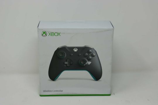 A boxed as new Microsoft Xbox Wireless Controller in Grey/Blue (WL3-00106).