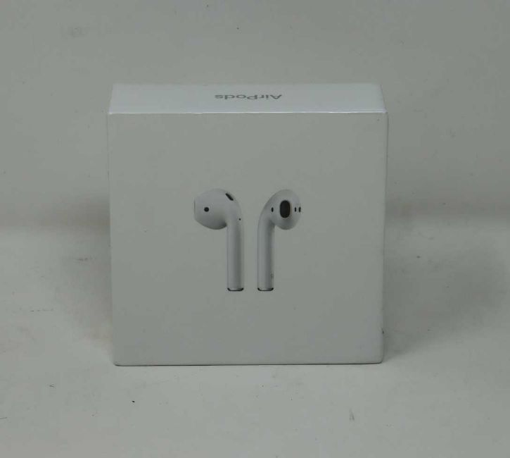 A boxed as new pair of Apple AirPods (2nd Gen) with Charging Case (Box sealed, some cosmetic damage to box).