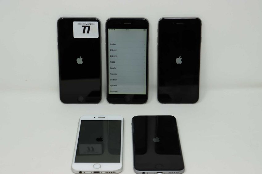SOLD FOR PARTS ONLY: Five pre-owned Apple iPhone 6 (Global/Sprint/A1586) (All iCloud locked, some with cosmetic damage and light scratches to screen. Sold for parts only).