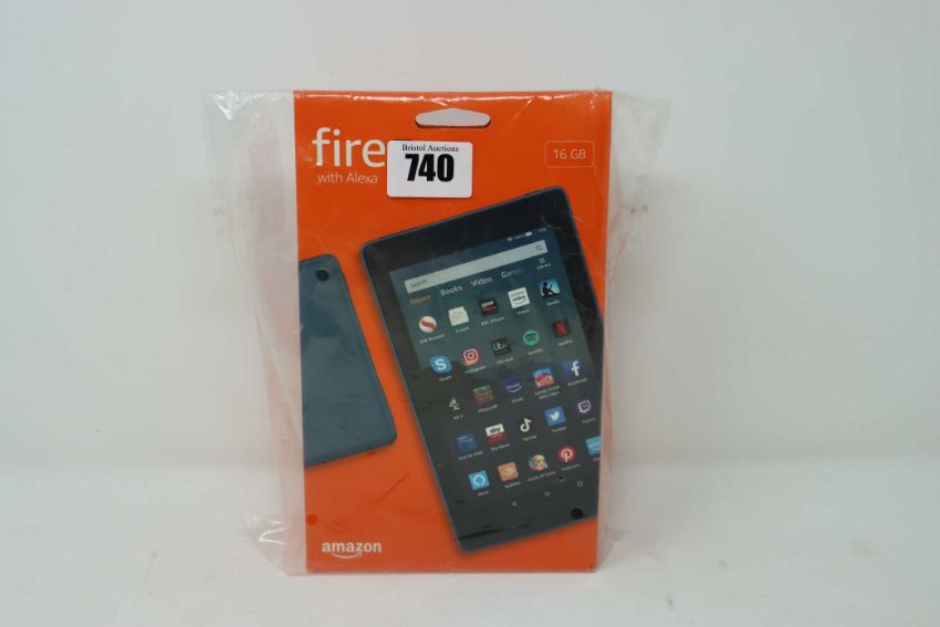 A boxed as new Amazon Fire 7 with Alexa 7" 16GB Tablet in Twilight Blue (Box sealed).