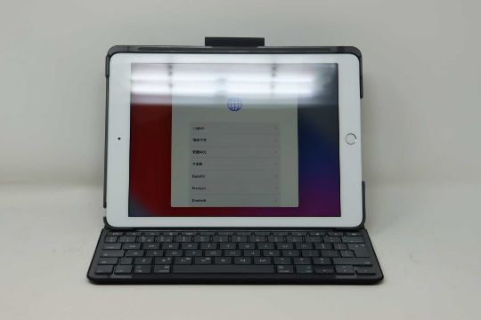SOLD FOR PARTS: A pre-owned Apple iPad 9.7" 6th Gen (Wi-Fi/Cellular) A1954 32GB in Silver (Checkmend report ID: CM16691288-8E21D) (iCloud activation locked, sold for parts only) with a Logitech Slim Folio Keyboard Case.
