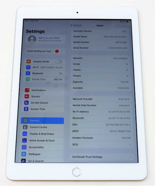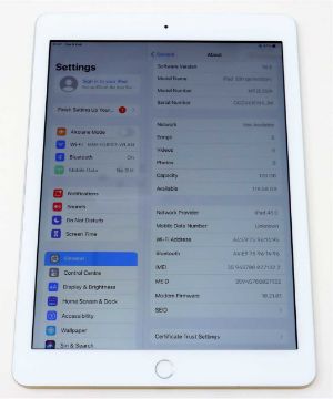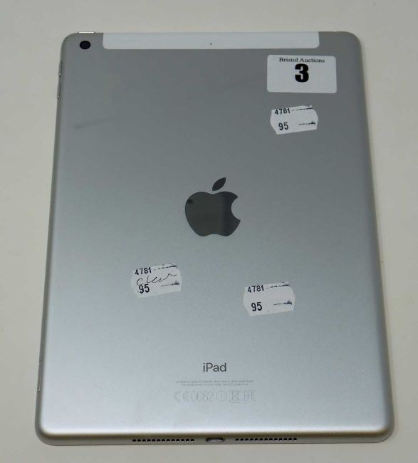 A pre-owned Apple iPad 9.7" 5th Gen (Wi-Fi/Cellular) A1823 128GB in Silver (iCloud activation clear. Some light scratches to screen glass and small amount f cosmetic damage to rear casing) (Checkmend report ID: CM16665497-8EF6B)