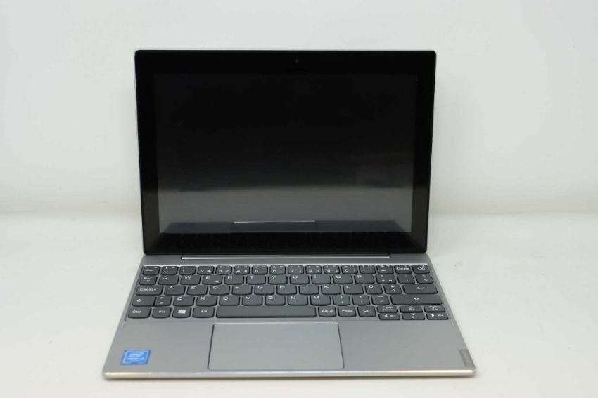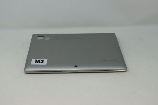 A pre-owned Lenovo Miix 320-10ICR 80XF 10.1" Convertible Touchscreen Tablet in Silver with Intel Atom Z8350 1.44GHz, 4GB RAM 64GB Storage running Windows 10 (Small amount of damage to casing) (No power supply included).