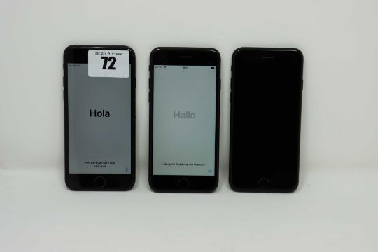 SOLD FOR PARTS ONLY: Two pre-owned Apple iPhone 7 (AT&T/T-Mobile/Global/A1778) and an Apple iPhone 7 (Verizon/Sprint/China/A1660) (All iCloud locked, some scratches to screen glass. Sold for parts only).