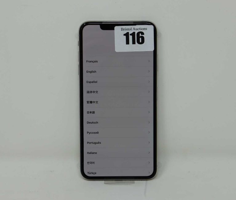 A pre-owned Apple iPhone Xs Max (Global/A2101) 256GB in Silver (FRP clear) (Checkmend report ID: : CM16733780-8D860).