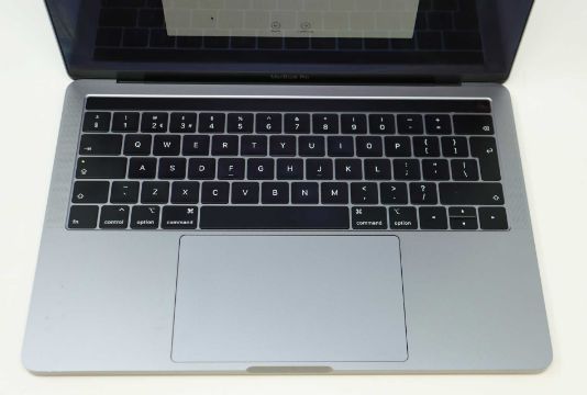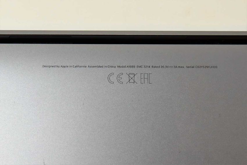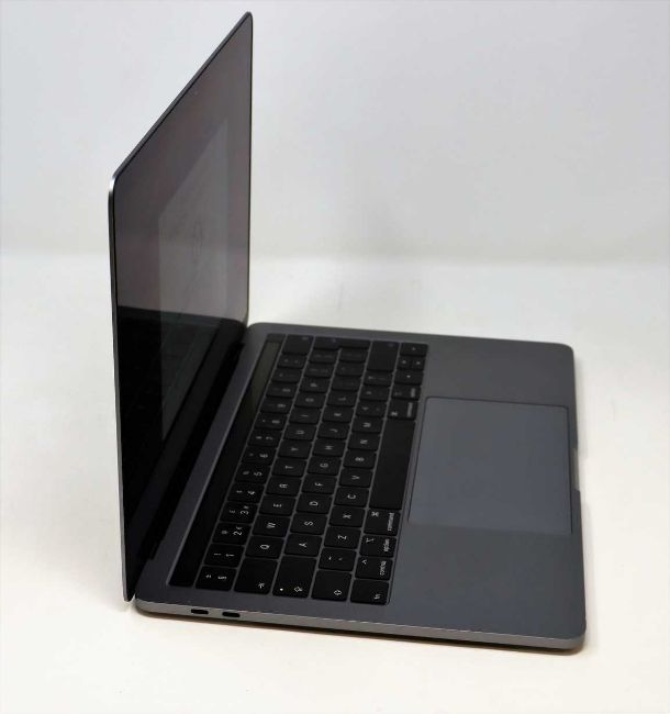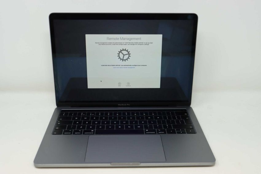 A pre-owned MacBook Pro 13" (Touchbar/2018) A1989 in Space Grey (Remote management locked, sold for parts only) (Checkmend report ID: CM16697621-DD770).
