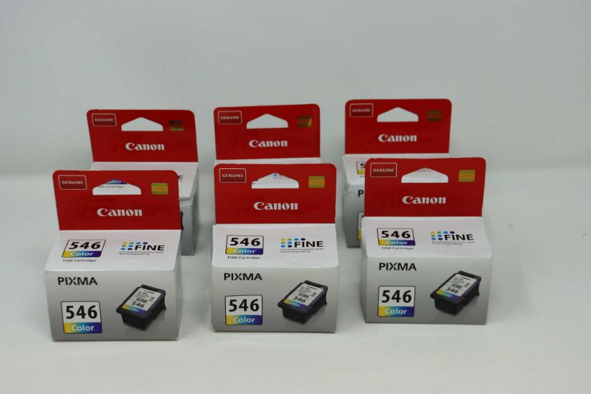 Six boxed as new Canon CL-546 3 Colour (Cyan, Magenta, Yellow) 9ml Cartridges (P/N: 8289B001 AA) (Some cosmetic damage to boxes).