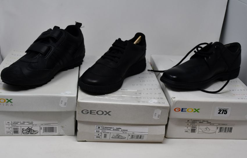 Three pairs of as new Geox footwear; Federico (UK 6), Noovae (UK 6) and Savage (UK 7).