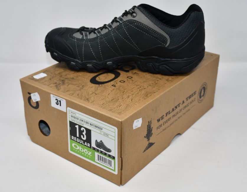 A pair of as new Oboz Bridger Low B-Dry waterproof hiking shoes (UK 12 - RRP £135).