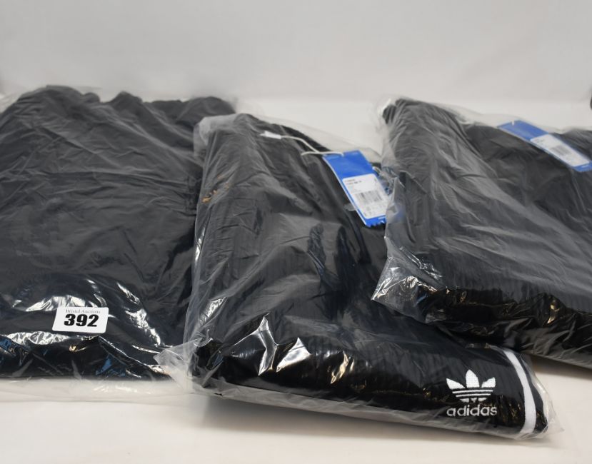 Three pairs of as new Adidas Cord BB training pants (All XL) and an Adidas fleece hoodie (2XL).