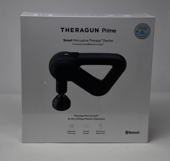 One boxed as new Theragun Prime Smart Percussive Therapy Device.