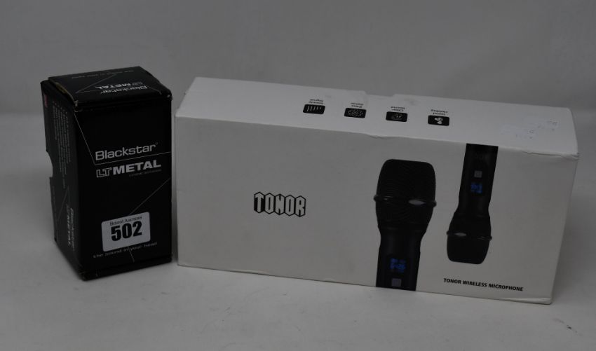 One Blackstar LT Metal distortion pedal and one Tonor wireless microphone set (TN120074BL), both boxed as new.