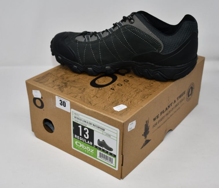 A pair of as new Oboz Bridger Low B-Dry waterproof hiking shoes (UK 12 - RRP £135).