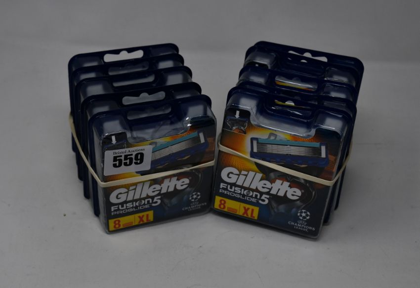 Ten packs of eight as new Gillette Fusion5 Proglide razor blades.