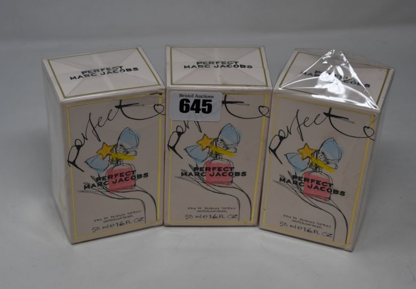 Three boxed as new Marc Jacobs Perfect eau de parfum (50ml).