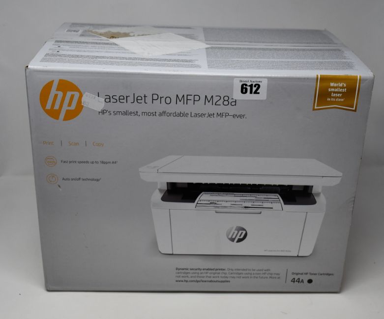 One boxed as new HP Laser Jet Pro MFP M28a.