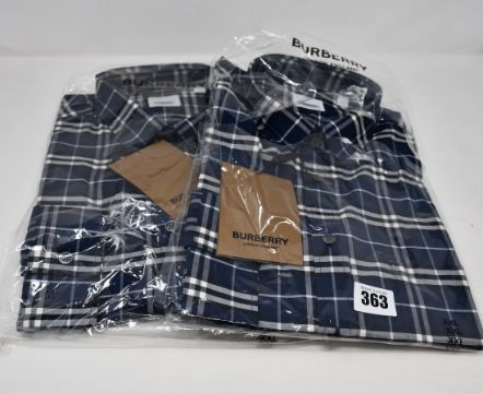 Two as new Burberry Simpson shirts in blue check (Both XXL - Security tags attached, RRP €89 each).