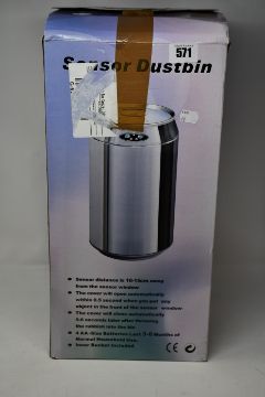 Two boxed as new Sensor dustbins in white.