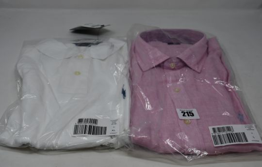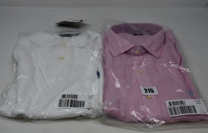 An as new Ralph Lauren polo shirt in white (XL) and a Ralph Lauren Classics shirt in pink (L).