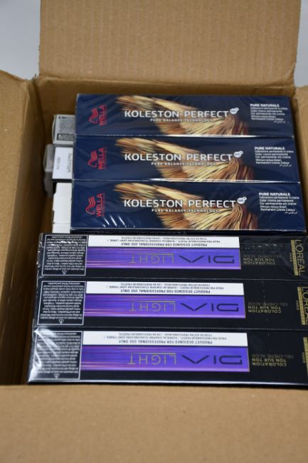 An assortment of as new permanent cream colour to include Wella Koleston Perfect, L'Oreal INOA high resist and L'Oreal Majirel.