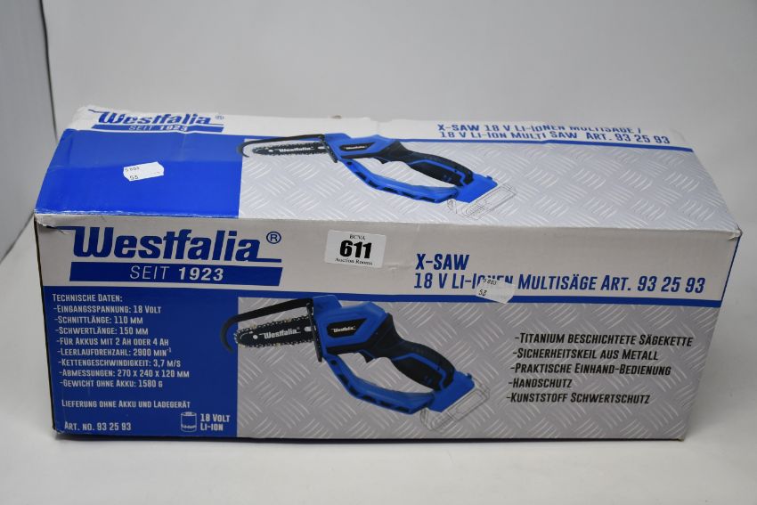 A boxed as new Westfalia 18 V Li-Ion Multi Saw (932593).