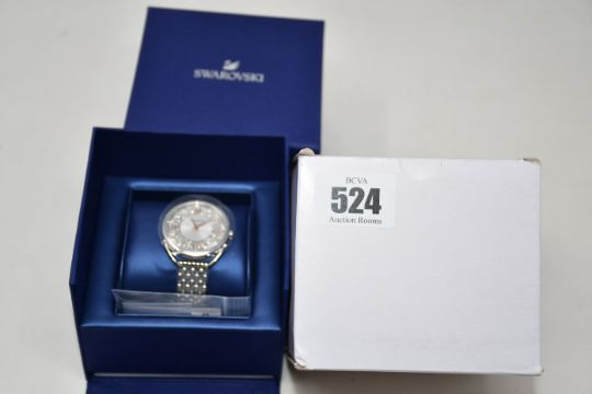A ladies boxed as new Swarovski Crystaline Glam Watch with metal bracelet (White, stainless steel).