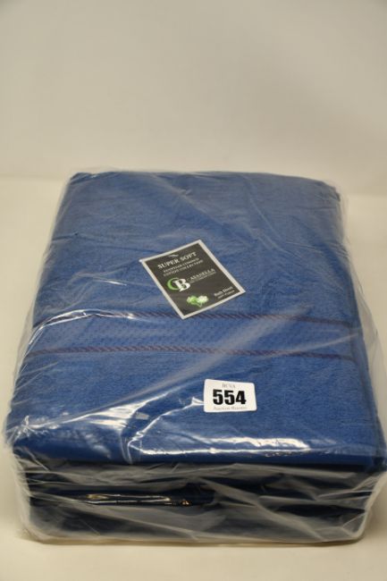 Eight packs of four Casabella Supersoft Egyptian Combed Cotton Bath Sheets in royal blue.