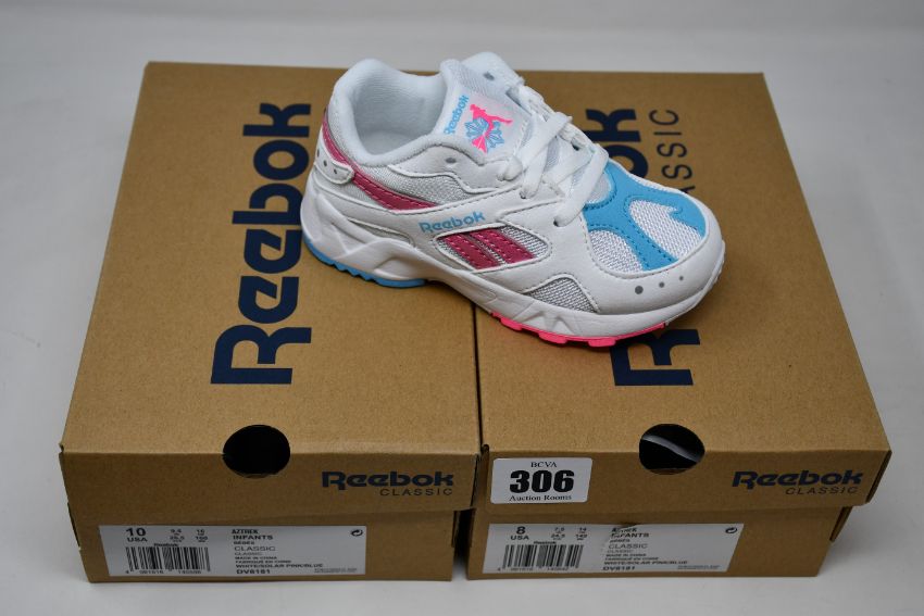 Four pairs of infants as new Reebok Aztrek trainers (2 x 7.5, 2 x 9.5).
