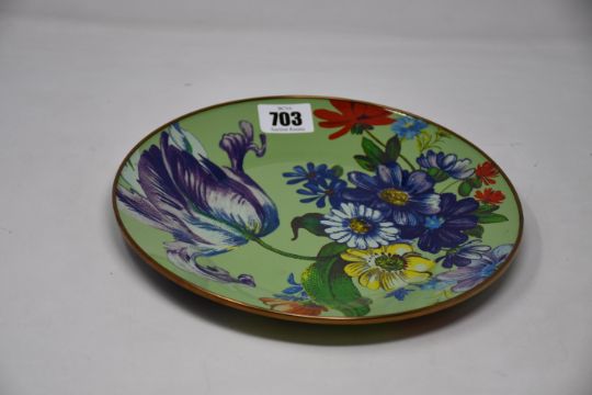 Eight as new Mackenzie-Childs Flower Market enamel dinner plates green (RRP $48 per plate).