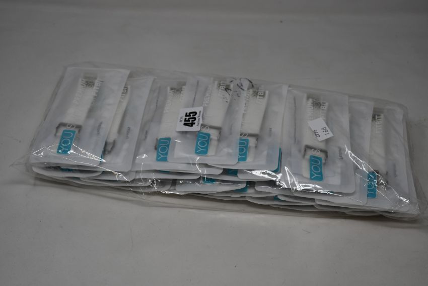 A large quantity of boxed as new Fitbit classic buckle silicone wrist straps in white (Approximately 50).