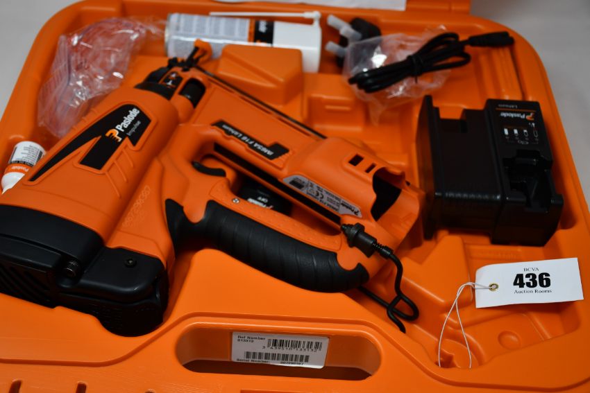 A boxed as new Paslode Li-on second fix cordless gas nail gun (IM65A F16).